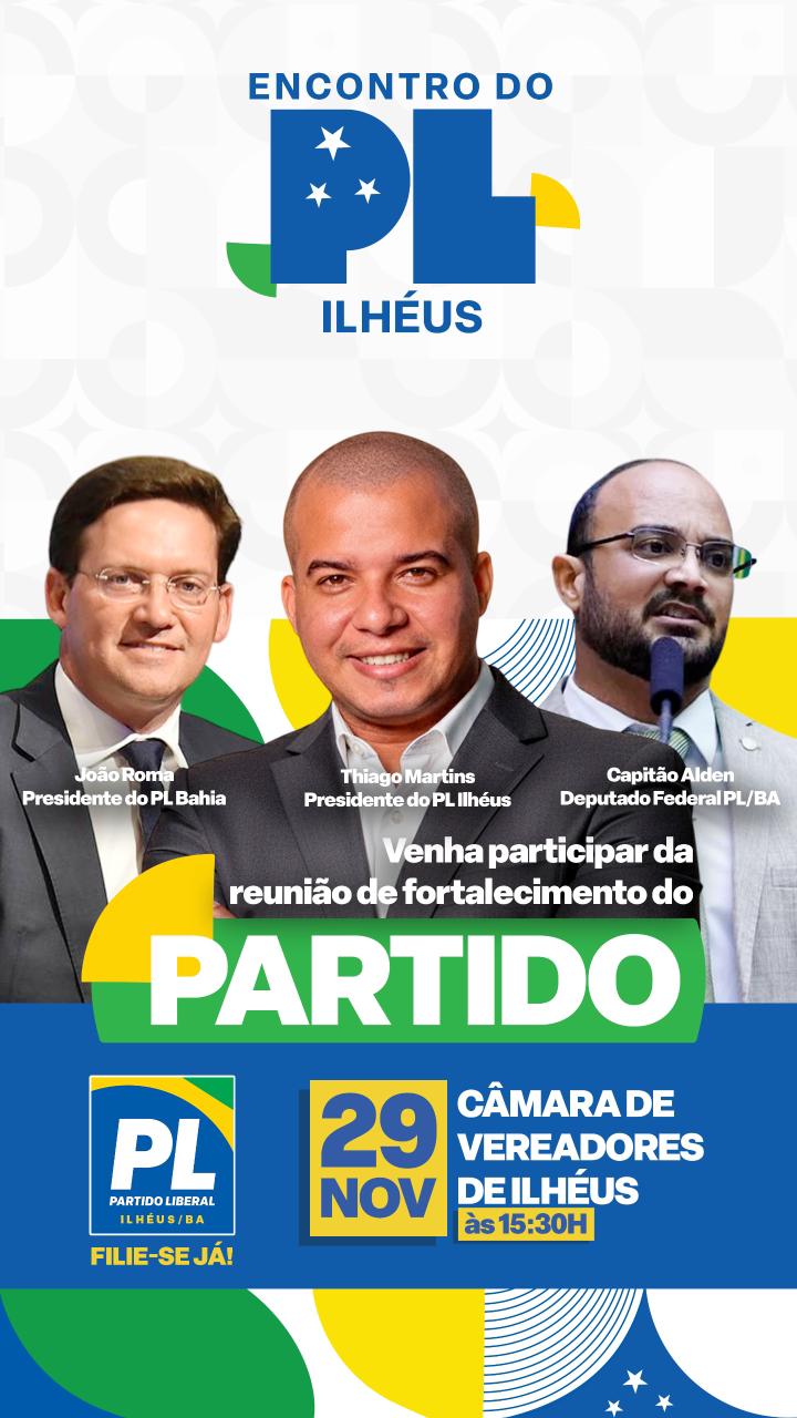 A reunião contará com presenças de destaque no cenário político baiano e nacional, como o deputado federal Capitão Alden, o presidente estadual do PL, João Roma — ex-ministro da Cidadania do governo Jair Bolsonaro e atual pré-candidato ao Senado —, além do presidente municipal do PL de Ilhéus, Thiago Martins, que desponta como pretenso pré-candidato a deputado estadual.