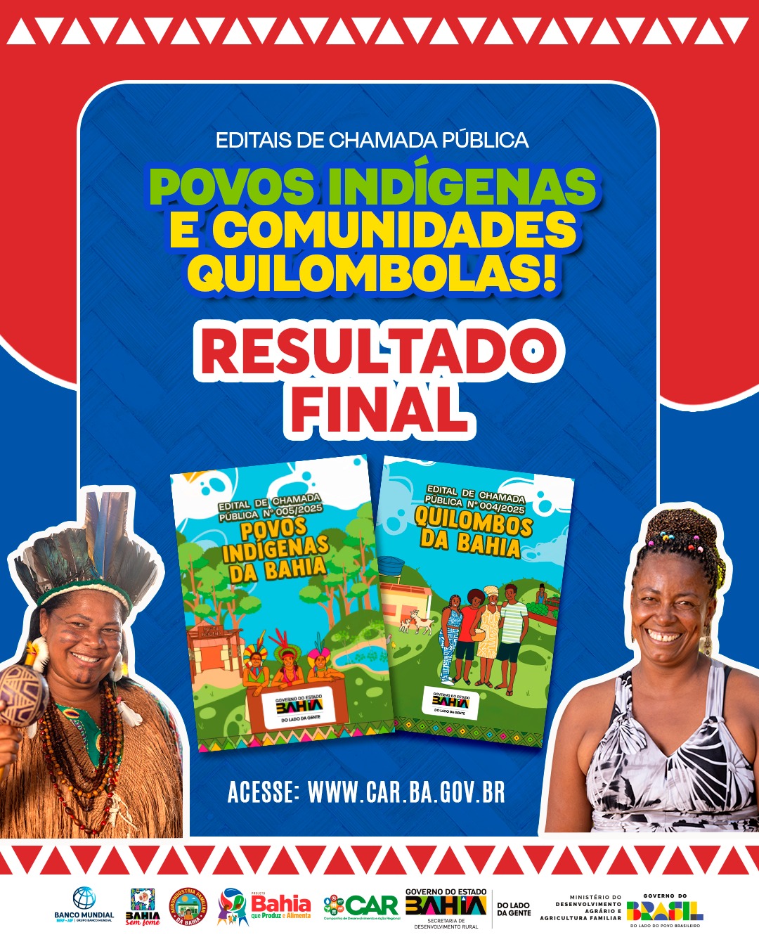 O Governo do Estado da Bahia divulgou o resultado final do processo de seleção dos editais de inclusão produtiva voltados a povos indígenas e comunidades quilombolas. A lista com as propostas classificadas já está disponível no site da Companhia de Desenvolvimento e Ação Regional (CAR), empresa pública vinculada à Secretaria de Desenvolvimento Rural (SDR).